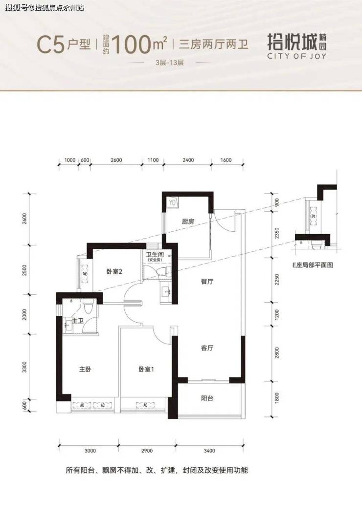 100㎡的3房2厅2卫,设计的竖厅格局,客厅3.4米开间,有西南及东南朝向