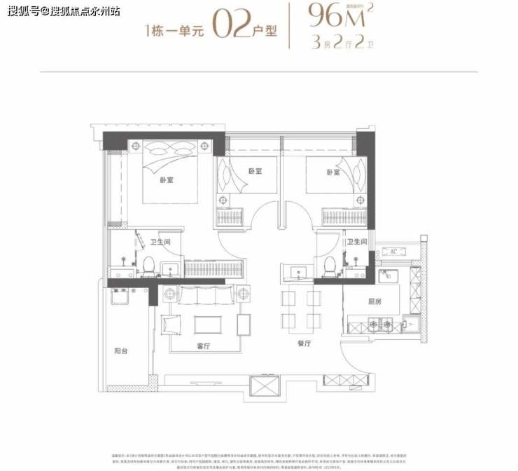 建面96-102平米:3房2厅2卫都是传统的竖厅,动静分区格局。