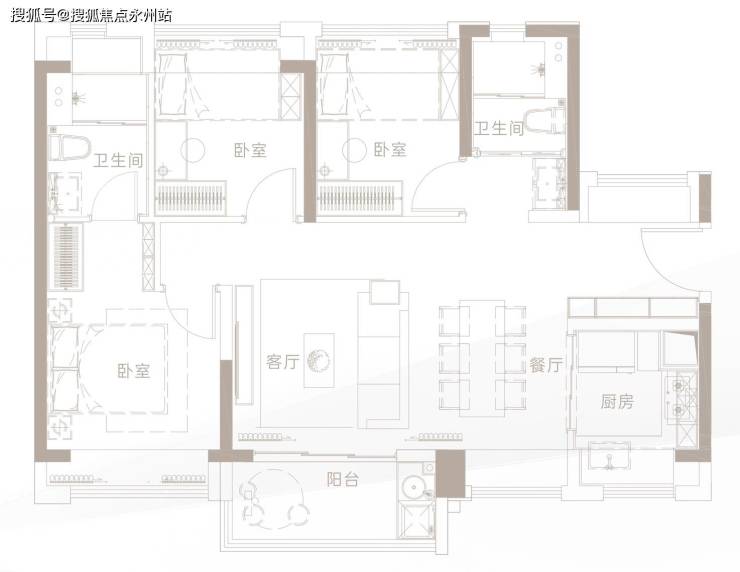 面积:79-85㎡3房1卫,91-95㎡3房 2卫,125㎡4房2卫