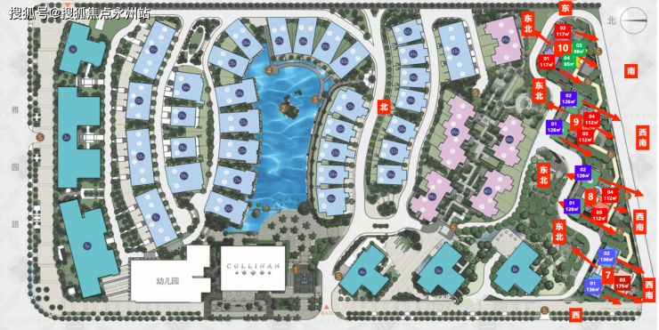 台地园景,“歌剧院式”规划布局,循地势南北高,中间低,形成自然起伏呈“聚气藏风”之势,推窗即见景也保障居住私密性与舒适性;