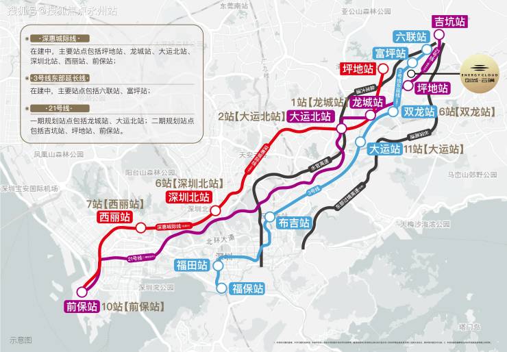 深惠城际轨道线-坪地站(在建中,预计2026年开通);未来1站龙城、2站大运、7站南山,畅联前海、西丽高铁枢纽站和深圳北高铁枢纽站。
