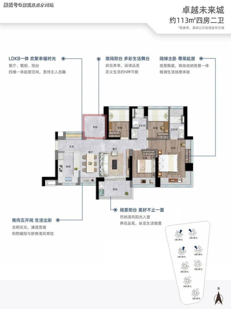 113㎡的4房2厅2卫,折后总价在480-503万/套,单价4.29-4.49万/㎡。