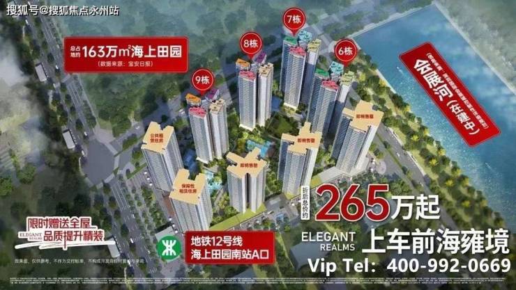 项目位于宝安会展海洋城板块,距离地铁12号线海上田园南站A口约50米的央企大盘招商会展湾雍境花园,一次性加推778套单位,并且限时赠送品质提升装修包,三套全新样板房已经开放参观,2025年6月交付_Vip Tel:400-992-0669(售楼部)中介勿扰