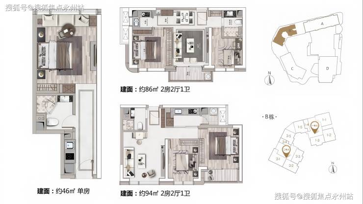 A座:建筑面积约160-220㎡2-3房(南北通透,专梯入户)