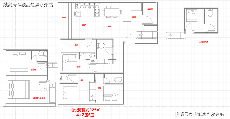 225-252㎡4+2房6卫:东北深圳湾+城景,西北前海湾+城景,东南深圳湾+大小南山,西南前海湾+大小南山