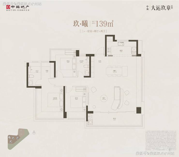 139㎡3+1 房两厅两卫户型(3栋A/B座)