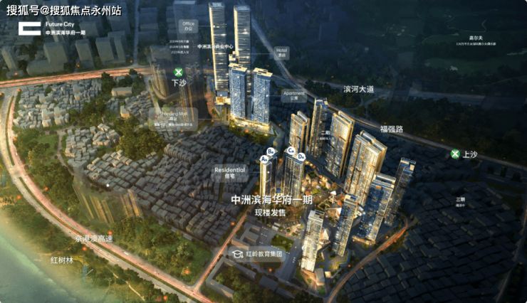 中洲湾迎海,原为上沙村城市更新单元,总占地面积9.7万㎡,总建面约126万㎡,业态有住宅、公寓、写字楼、酒店、商业等,分为四期开发。