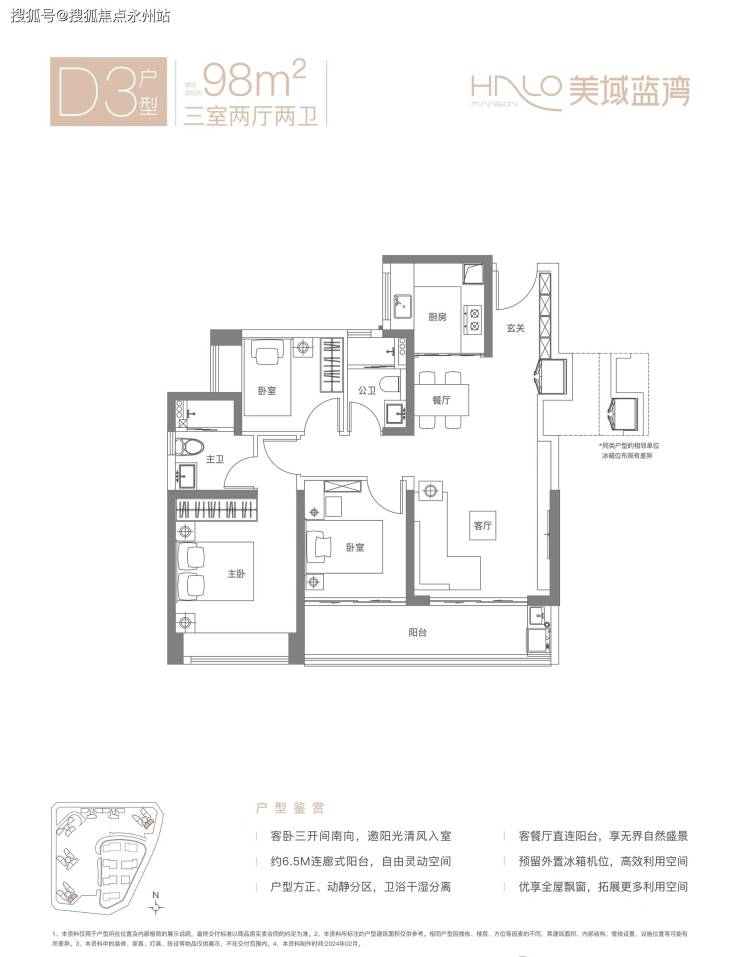 美域蓝湾没有采用市面上常规的80多平的上车型设计, 而是尊重尺度的舒适感,侧重于高端改善客群,打造出建面约95-144㎡三至四房的产品,各户型的尺度都是比市面上同面积产品高的 。
