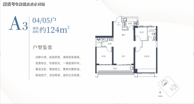 建面约124㎡的实用户型: