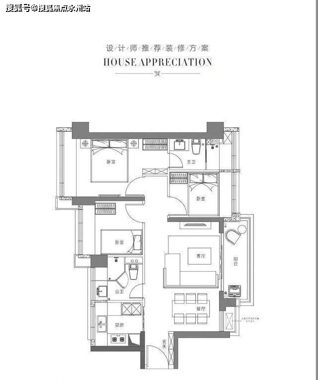 89平3房2卫,适合刚需,使用率极高,方方正正的