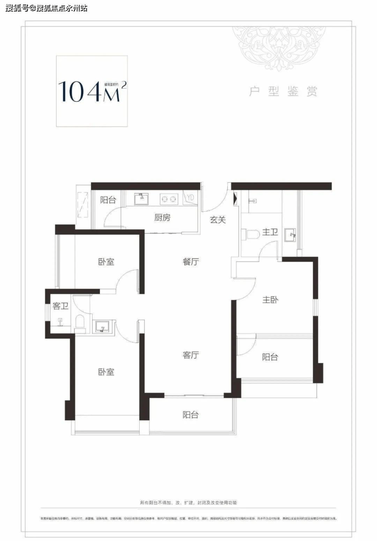 建面约104㎡3房2厅2卫双龙抱珠户型,对称的房间布局,客厅位于中间位置,动静分区空间合理规划。于三口之家而言,能多一处随心创享的自由空间,于二胎家庭而言,让每一个孩子都有独立的成长空间,于三代同堂的家庭而言,亦有互不打扰的奢适。