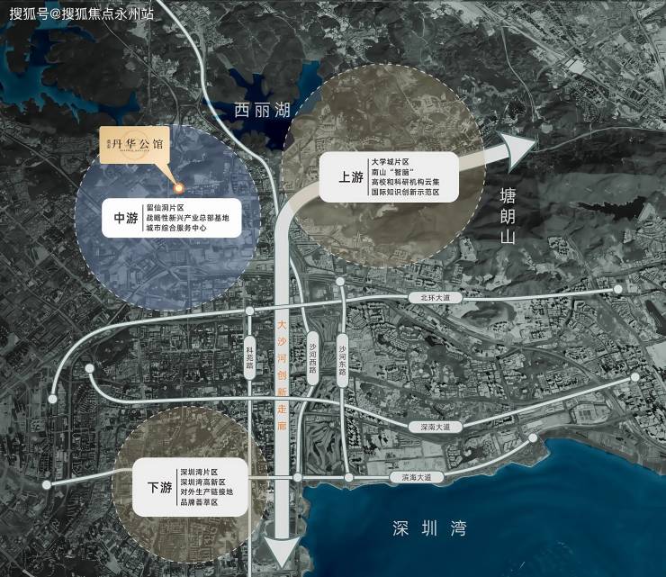 项目位于南山西丽留仙洞总部基地、西丽高铁新城、西丽湖国际科教城三大战略发展区交汇处。