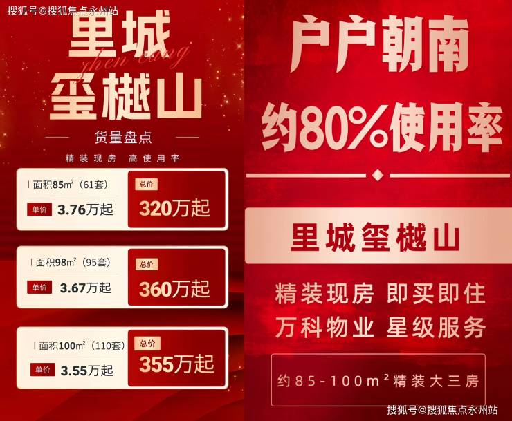 现正推出限时清盘优惠,优质房源分秒递减!85㎡温馨三房、98㎡舒适三房、100㎡精品三房,精装交付。