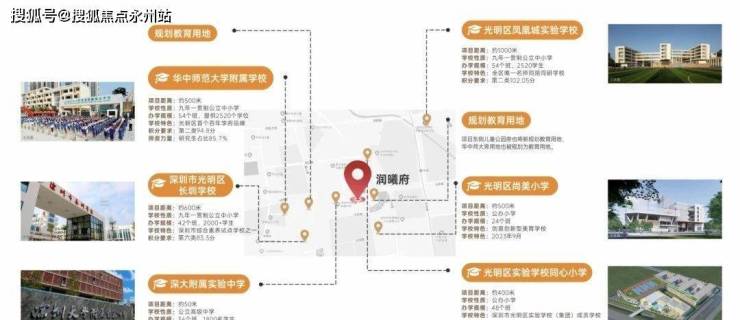深圳大学附属光明学校:就在润曦府距离约100米,由深圳大学附属中学与光明区教育局共同举办,在2024年9月首批招生,是一所九年一贯制公办学校,办学规模为54个教学班,可以提供2520个学位,在2024-2025学年是借址深圳大学附属实验中学办学。