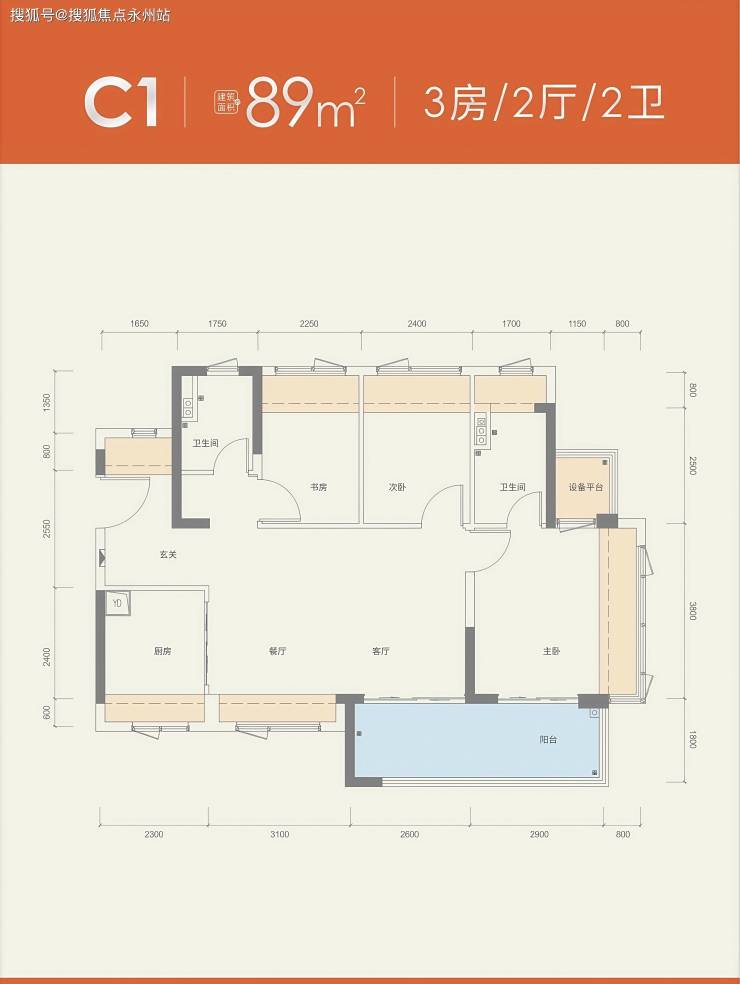 89㎡横厅户型:5.5米超大阳台+双飘窗设计,得房率101%,堪比106㎡改善型住宅。