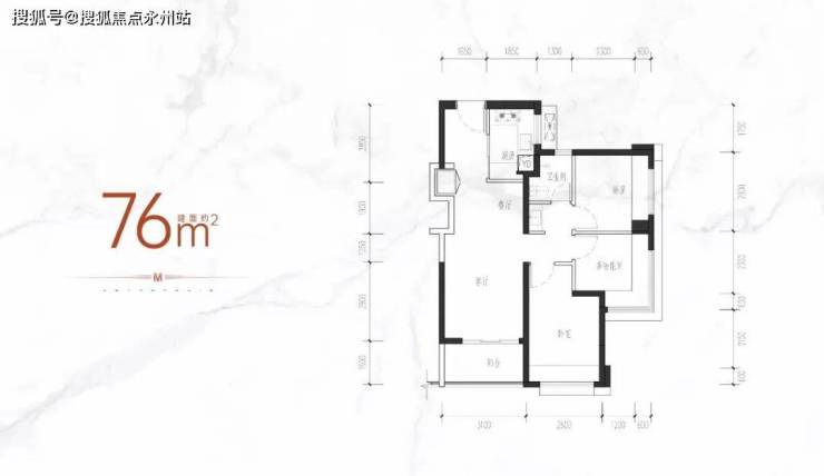 76㎡的3房1卫,设计的竖厅格局,有西南及东南朝向;