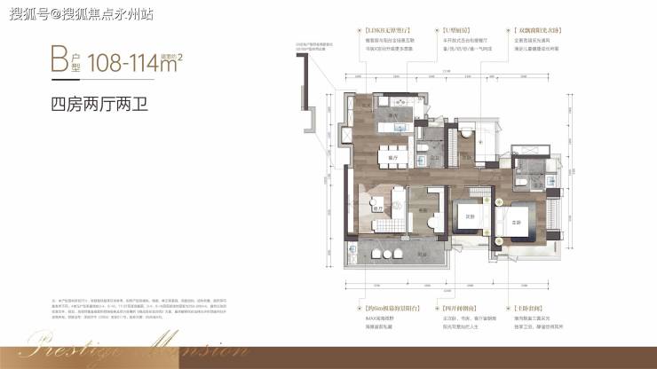 108-109㎡四房:竖厅或横厅设计,动静分区,主卧带独立卫浴,部分户型可拓展为“4+1”房,实际使用空间媲美传统120㎡户型。