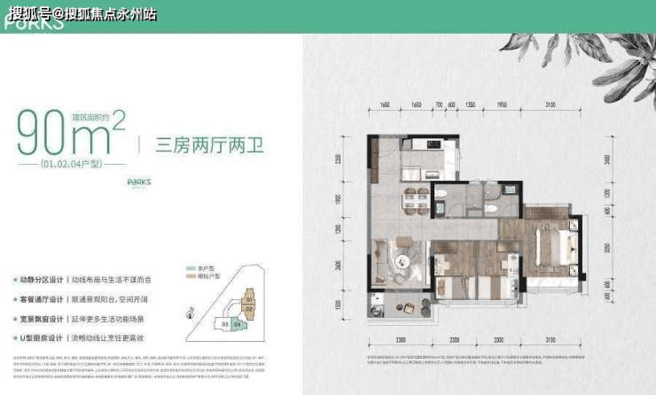 户型简介:三房两厅两卫 动静分区设计|动线布局与生活不谋而合 客餐通厅设计|联通景观阳台,空间开阔 宽景飘窗设计|延伸更多生活功能场景 U型厨房设计流畅动线让烹饪更高效