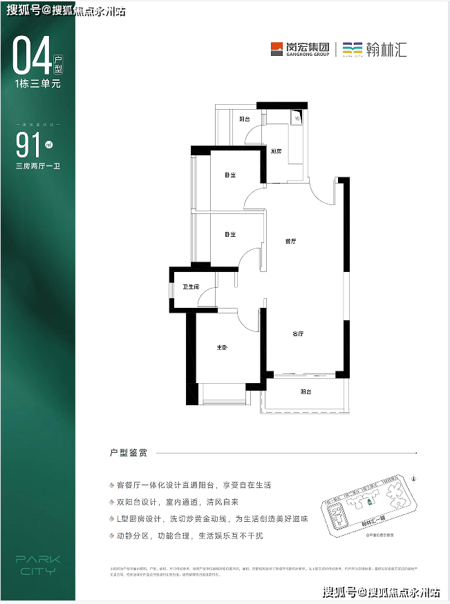 106-110㎡-3房2厅2卫,折后总价318-346万/套,单价2.87-3.25万/㎡。