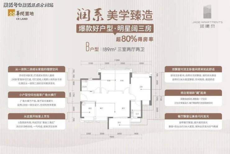 在售户型面积:89m²三房二卫竖厅横厅,东南、西南 110m²三房二卫竖厅,东南、西南,备案均价:4.7万元/m²(区间价:4.4-4.9万)折后单价3.2-3.51万/㎡,梯户型比:3梯6户 楼层状况:共6栋,4栋住宅(32-33层)+1栋保障房+1栋幼儿园,物 业 费:4.5元/m²/月,物业公司:润加物业,开发商:华润置地(央企)