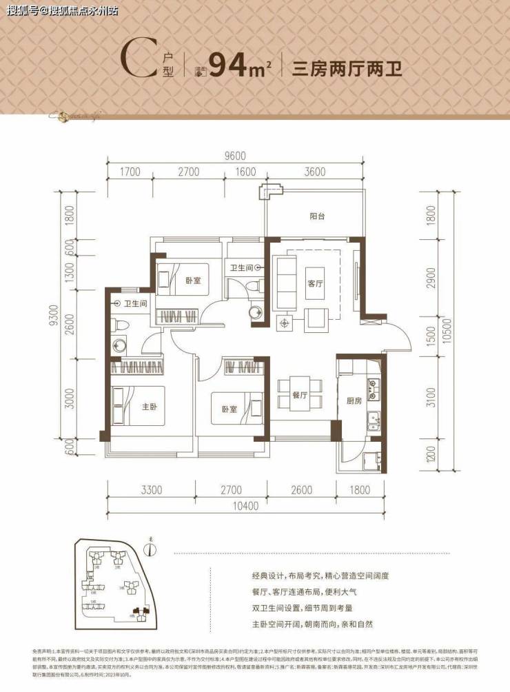 C户型:约94㎡3房2厅2卫【楼栋】4栋