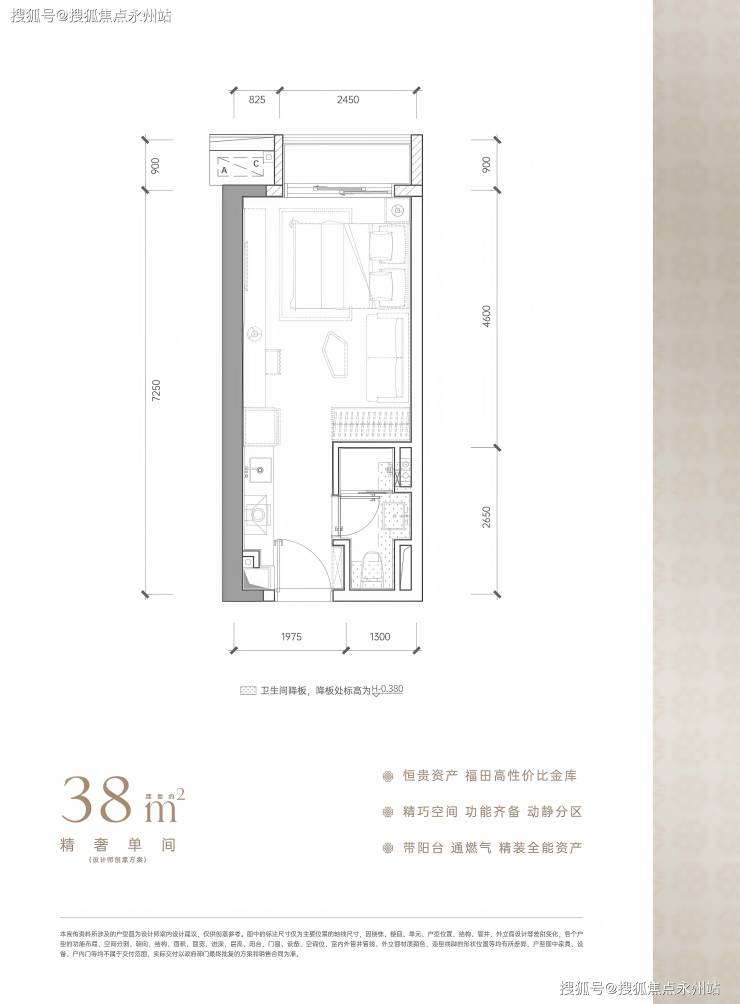 建面约38㎡,麻雀虽小五脏俱全,带阳台通燃气,卫浴干湿分离,房间更防潮,总价1字头,以最低门槛上车福田核心区,预估未来租金水平可达5500元/月。