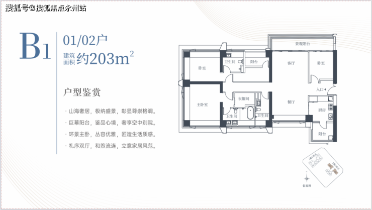 项目在售建面约124-203㎡的山海美宅,7米阳台+全景飘窗+270°山海景观等。
