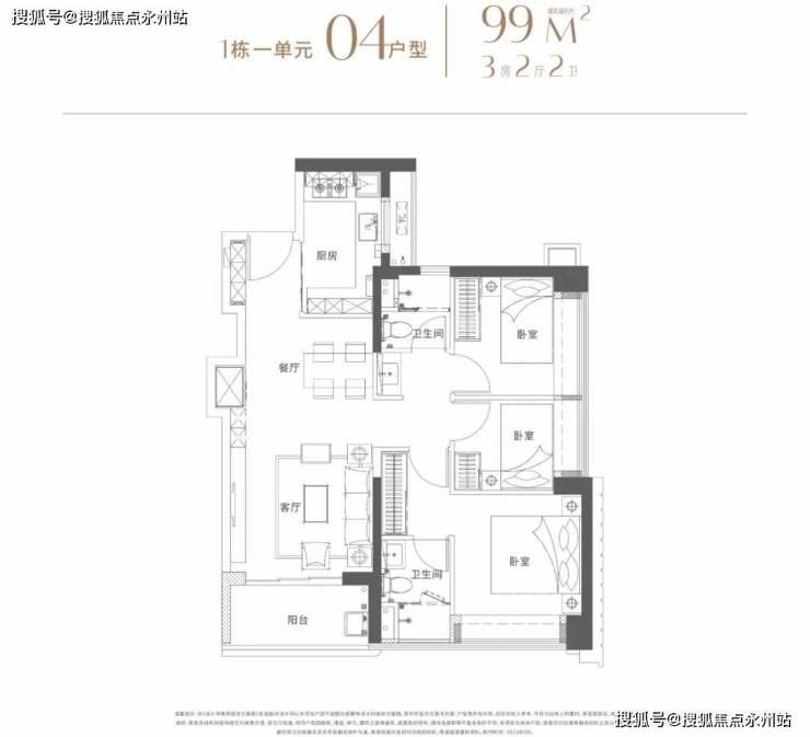 在售的1栋1单元 3T5户,01/02户型96平米3房2卫西北朝向,03户型119平米4房2卫西北/东南通透户型,04/05是99平米3房2卫西南朝向。