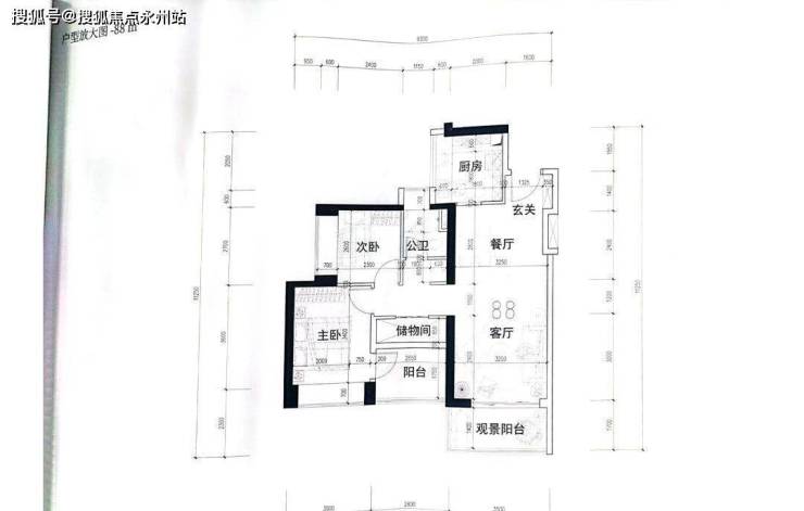 3梯6户,户型为88㎡1户,98㎡横厅1户、竖厅3户,118㎡1户;