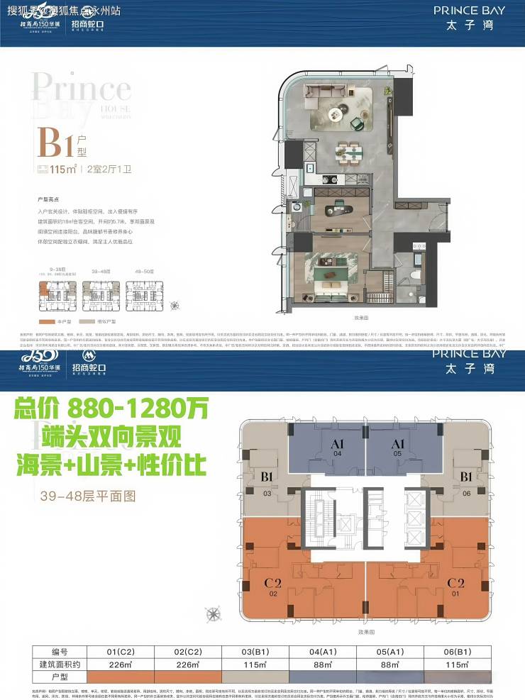 115平「2房2厅1卫」总价 880-1280万:端头双向景观 海景+山景+性价比