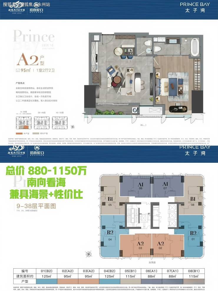 95㎡「1房1厅2卫」总价 880-1150万:南向看海 兼具海景+性价比 最佳入手王牌
