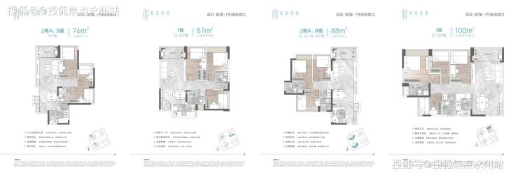 项目每个户型均做到全屋飘窗,使用率高达81%。其主力建面约87-88㎡ 3房2厅2卫,大部分做到了全南向采光,强调住房本身的宜居性的同时兼顾功能与美感。