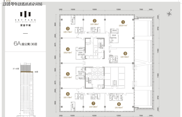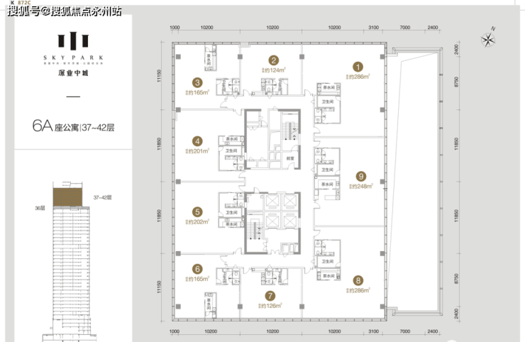 【公寓面积】6A栋约124-286㎡、6B栋约49-118㎡