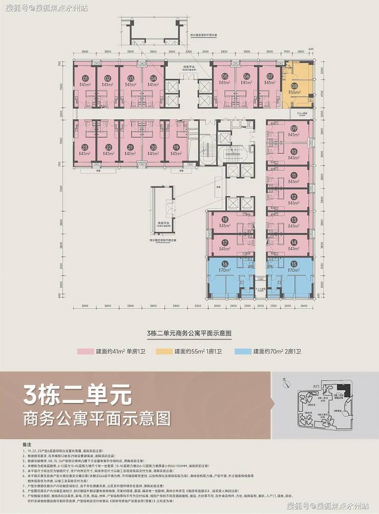 低楼层(1-10层)以 41㎡单间为主,部分 55㎡一房。
