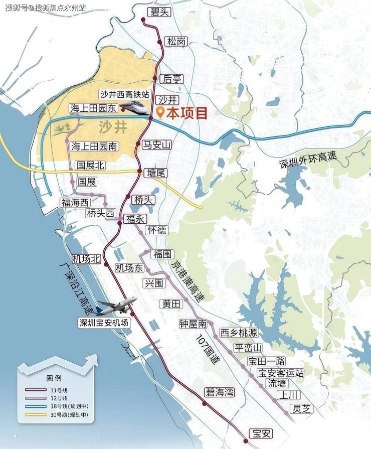 项目距地铁11号线沙井站仅460-550米,5站直达前海、10站抵达福田中心区,11号线作为西部黄金走廊,串联起深圳机场、前海、福田等核心区域,通勤效率极高网易手机网。周边毗邻广深公路、京港澳高速,30分钟可覆盖深圳宝安国际机场、大铲湾港口等交通枢纽,形成海陆空轨四维立体交通网络。