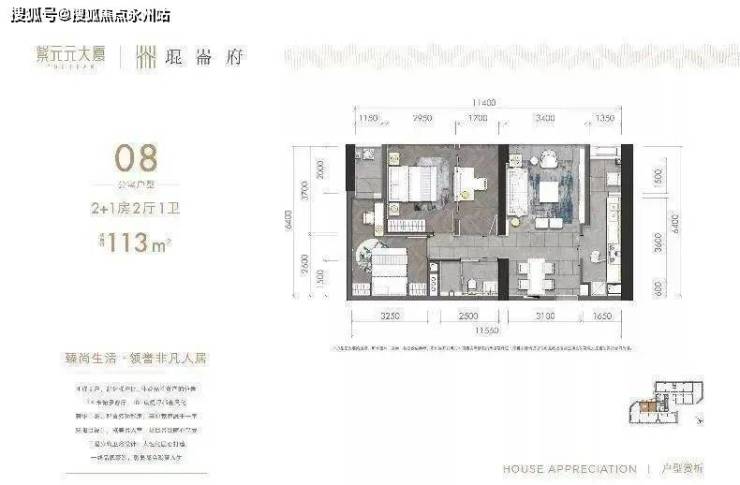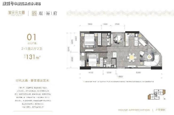 紫元元大厦在售。目前线下售楼部已开放(不限购、不限贷),在售公寓产品,层高约3.3米,4梯8户;一共有4个面积段的户型,建面分别约为113平、122平、130平及131平,均为2+1房。