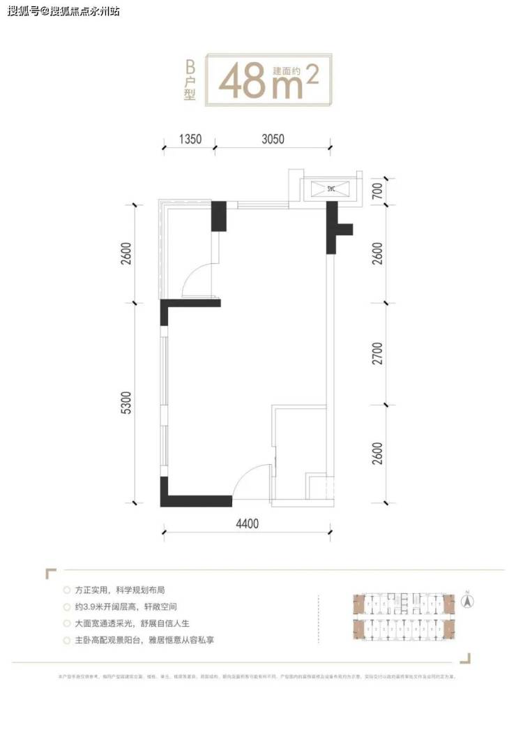 建面约38/48㎡智美人居,约3.9米优越层高,户型方正通透,户户独立阳台,通燃气到阳台,定制城市精英人士品质居住。