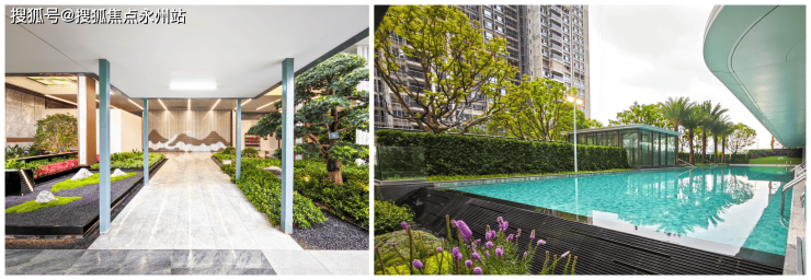 特色归家景观连廊,营造“四合院”式庭院归家礼仪;园区配置子母双泳池,演绎四季律动的生活场景。