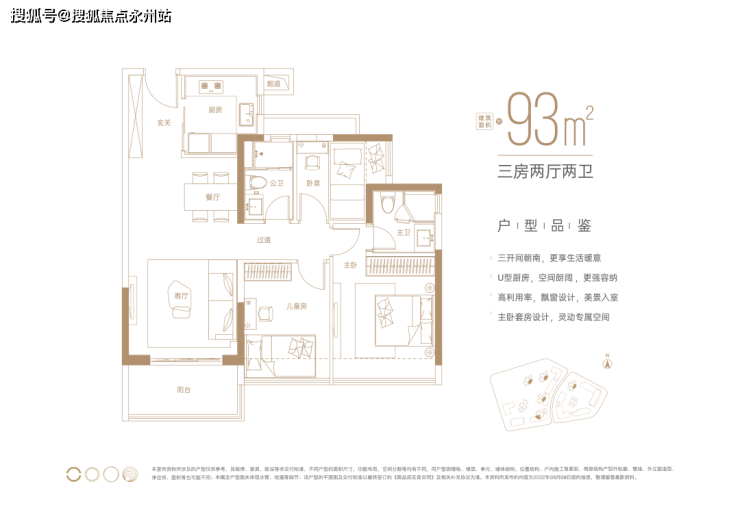93㎡户型是3房2厅2卫格局,算是中规中矩。但户型都是优势朝向,西南或东南朝向。