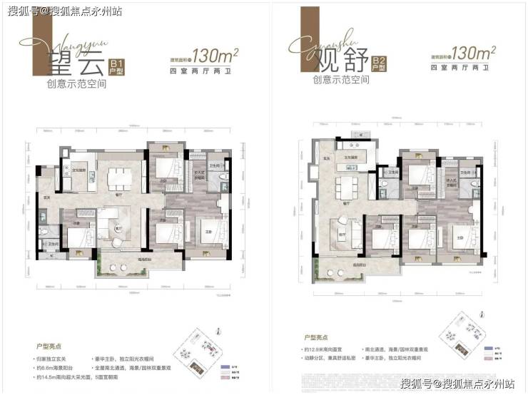 约130㎡四房两厅两卫 | 南向6.4m景观大阳台,5面宽朝南,全飘窗设计兼南北通透,LDK一体化