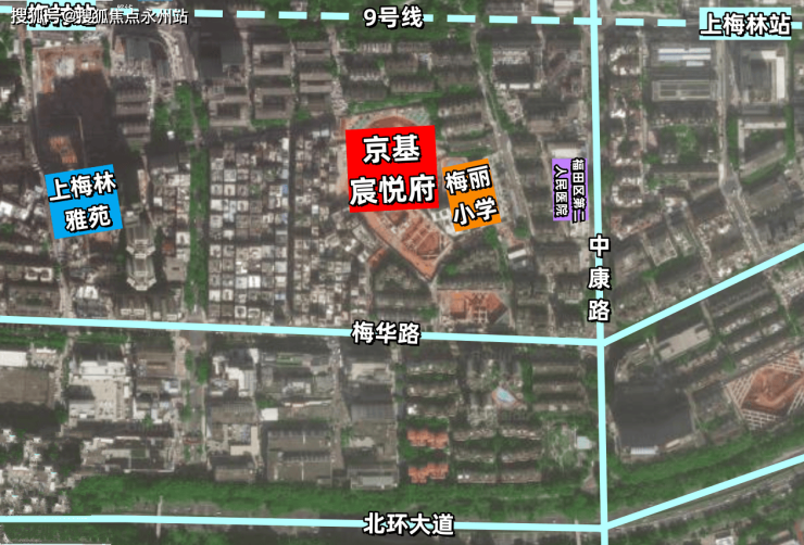 从小区域来看,京基宸悦府,东侧紧挨着梅丽小学,北侧是梅林四村,西侧是大片的上梅林新村,南侧紧挨着百兴苑,周边都是以老旧楼龄的小区或者民房为主。