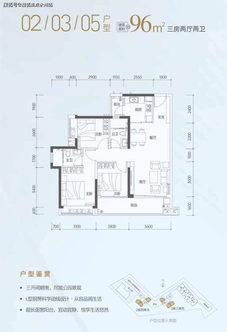 设计上都是比较讨喜的配置,如动静分区、双阳台、客厅宽景阳台等。
