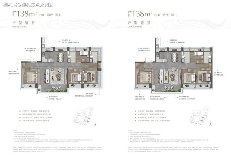 138㎡的四房两厅两卫空间布局:采用南北通透竖厅格局,面宽约15.5米,进深约10.2米,形成“短进深、大面宽”的黄金比例,采光通风效率最大化。