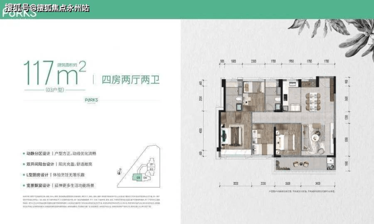 户型简介:四房两厅两卫 动静分区设计|户型方正,动线优化流畅 双开间阳台设计|阳光充盈,舒适敞亮 L型厨房设计|体验烹饪无限乐趣 宽景飘窗设计|延伸更多生活功能场景