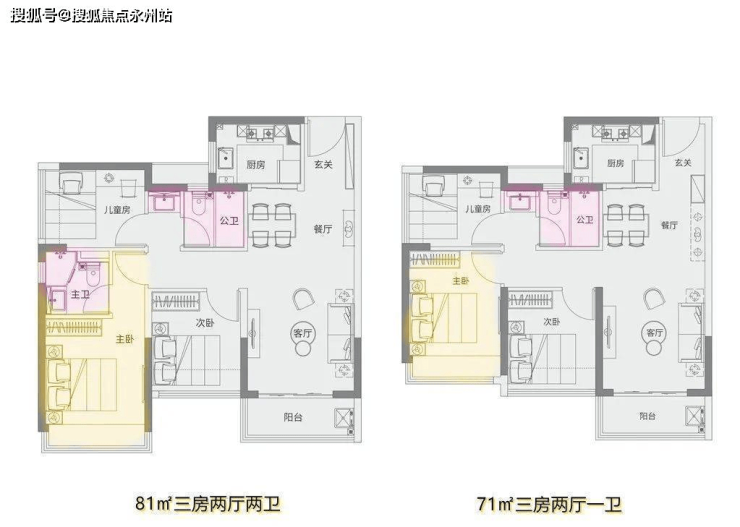 南山悦时光只专注做了两个户型:71㎡三房,81㎡的三房。