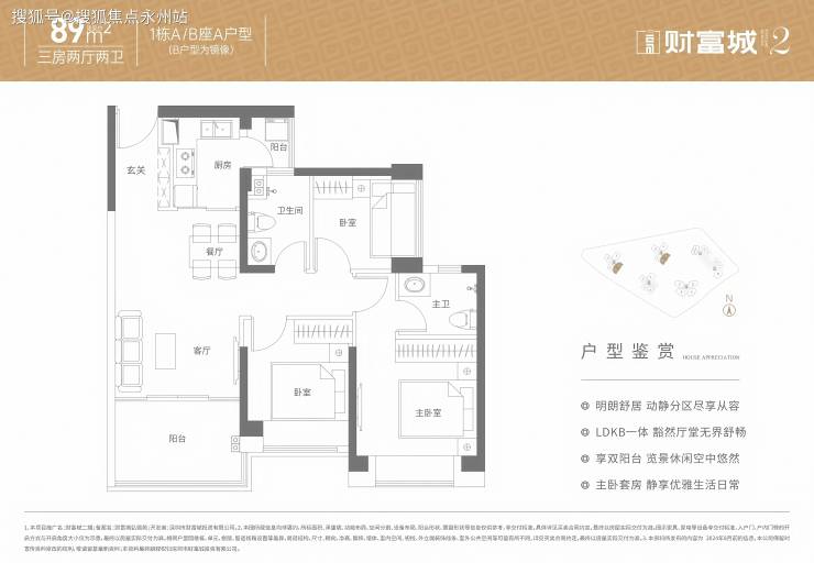 89㎡ 3 房 2 厅 2 卫(经典竖厅)