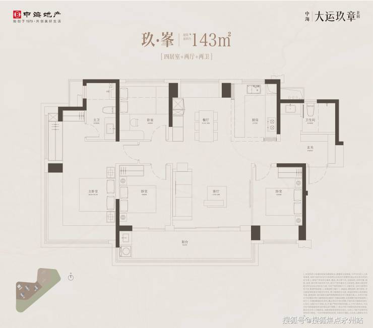 143㎡四房两厅两卫——湖景与山景的双重选择,提供了两种景观选择,充分体现了项目的稀缺性。