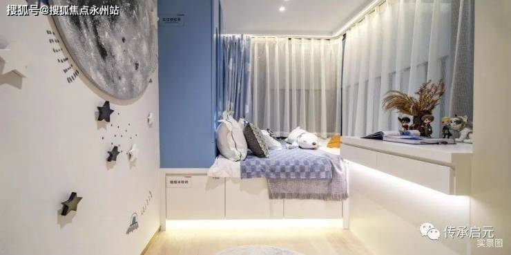 多一面飘窗,生活更多一面视角。约70㎡三房打造L型阳光儿童房,视野更加开阔,阳光更加充足,让孩子在阳光下茁壮成长。此外双飘窗空间,具备可拓展功能,可打造一体式榻榻米,不仅提升了空间利用率,更让孩子拥有一个童趣新天地。