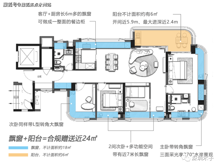 自带270°水岸观景飘窗,比别人多赏一面风景
