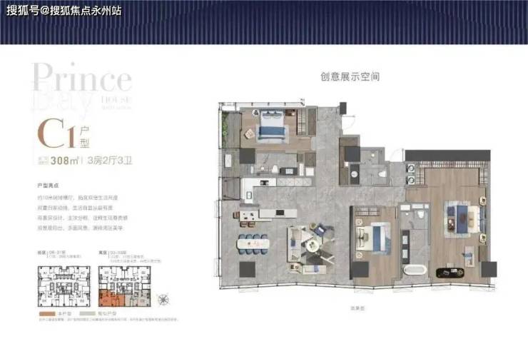 大平面大尺度定位,层高约3.6米,横厅设计确保最大化观景面,全户型纵享环幕视野。项目打造主力建面约215-415㎡纯粹品质公寓共191席,顶层为建面约1270㎡公寓产品。